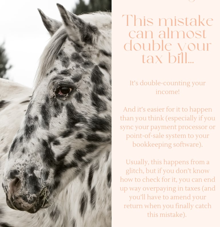 This mistake happens MORE often than you'd think... and it can result in you paying thousands more in taxes! It's DOUBLE-COUNTING your income. 💰 The number of times I've had to fix this mistake when I first get into a new client's books is way too high!! If you sync your payment processor or point-of-sale system to your bookkeeping software, sometimes these integrations can glitch and double up your sales. 🫠If you don't catch this before you file your tax return, you're going to report WAY more income than you actually earned. 👎
